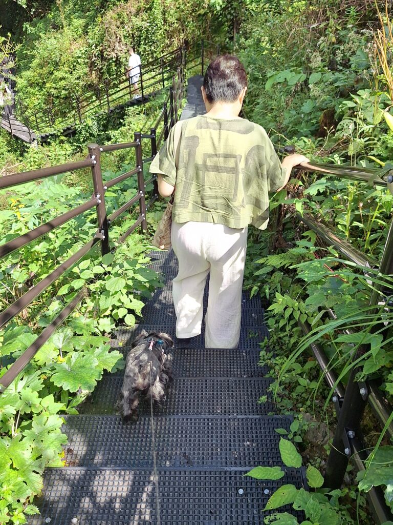 「協力金」のボックスに100円ずつ入れ 遊歩道へ なんだか下に降りていってるけど 行ってみよう🎵