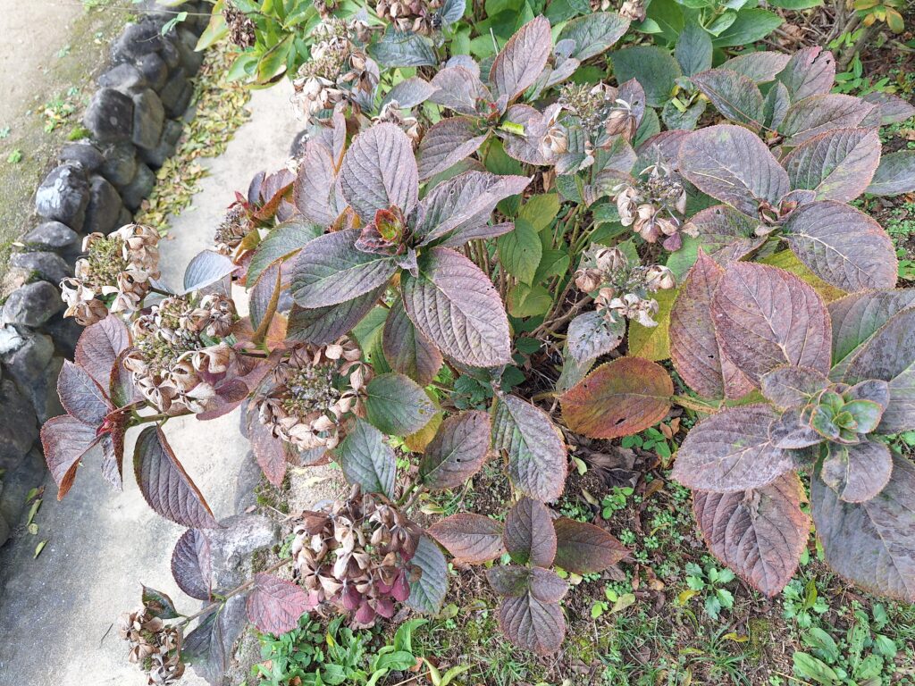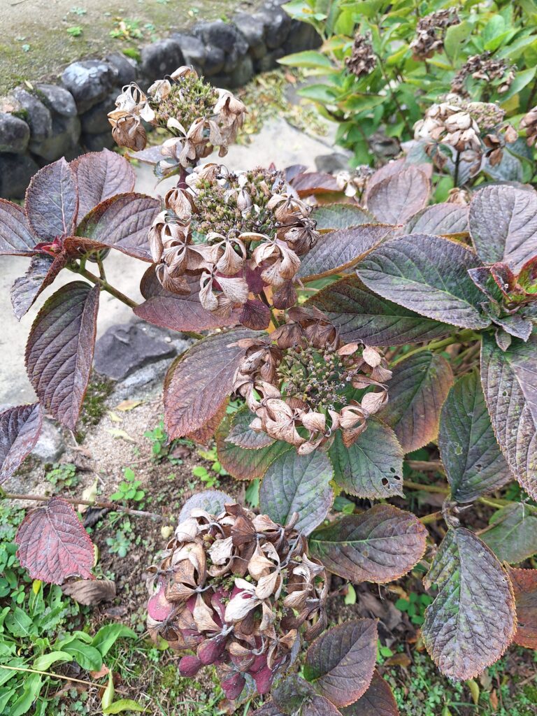 秋の花ではありませんが 紫陽花の花が終わった後 何だかお洒落なオブジェみたいになっていました