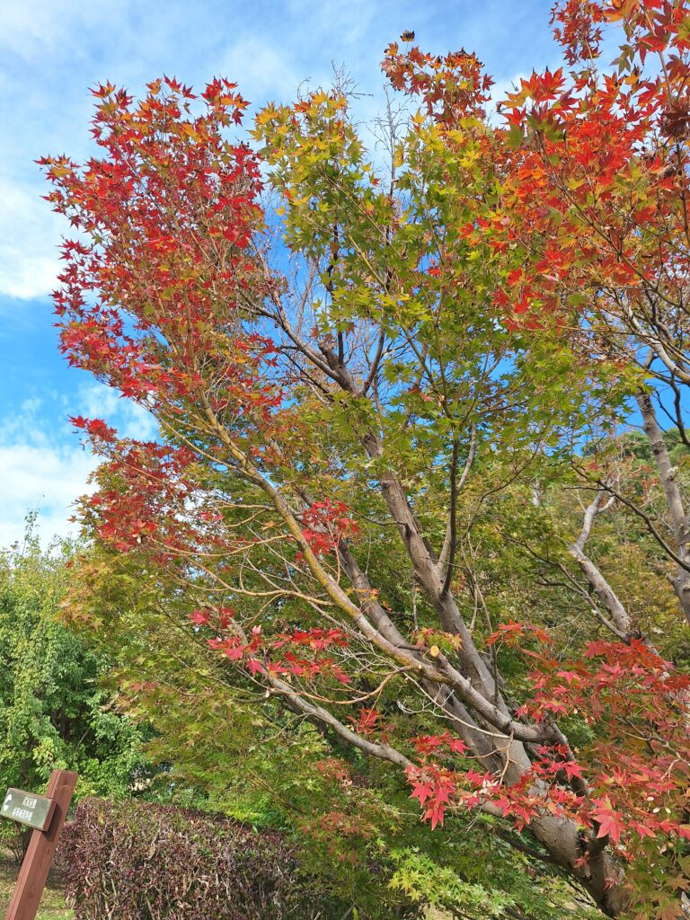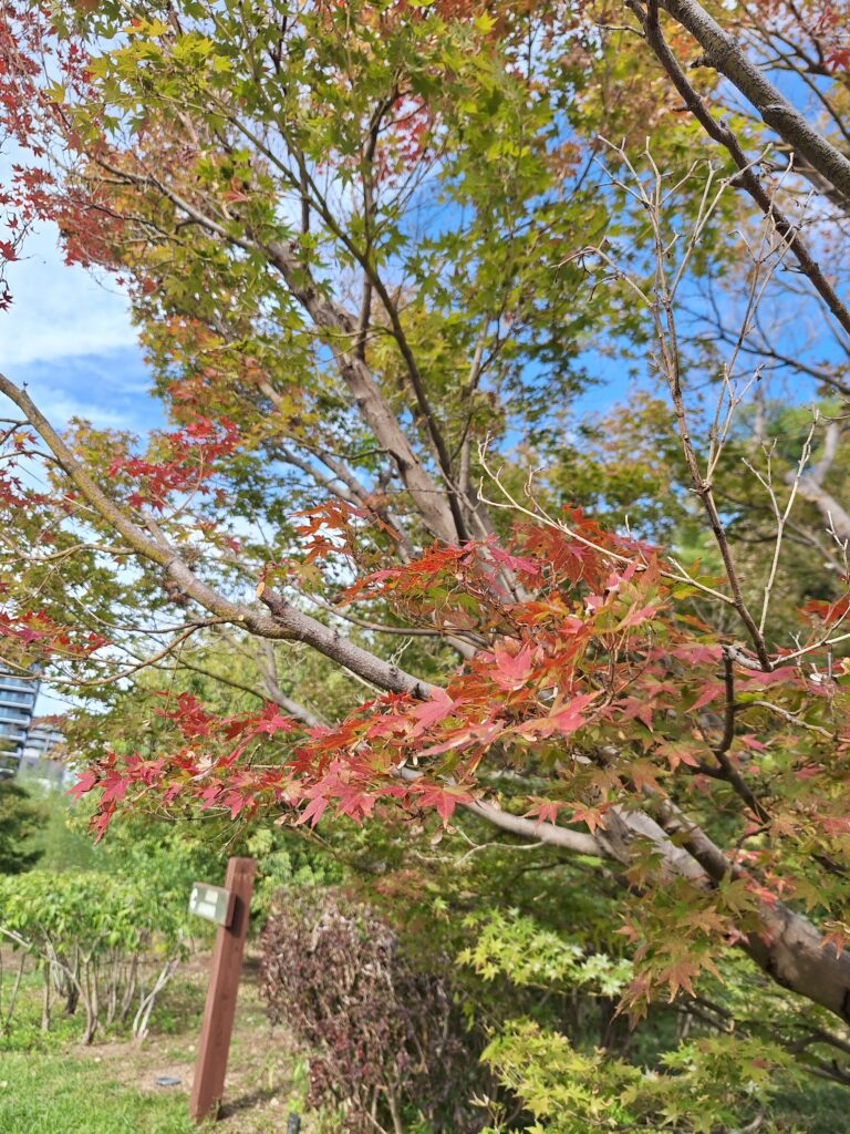 まだまだ紅葉の見頃ではありませんが 少しずつ色づいてきた 赤い色が綺麗です